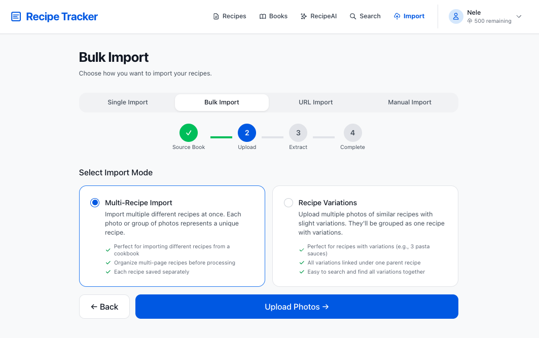 One useful feature emerged: capturing recipe photos on a phone. The app generates a short-lived QR code that lets you snap a photo on your phone and upload it directly to the desktop app. No cloud sync needed.